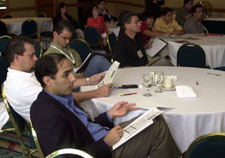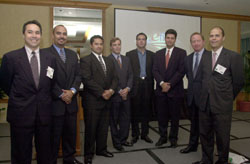 Miguel Cintron (Far Left) and Mick Lopez (Far Right) and six entrepreneurs that presented at the Venture Capital Fair at the Hispanic Internet Summit, sponsored by the USA Hispanic Chamber of Commerce and Hispanic Legal Association, among others.